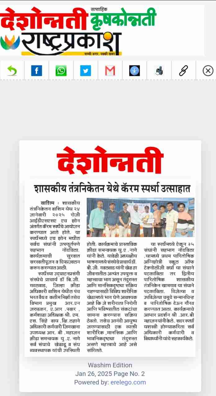 Participation of students in "Road Safety Rally" by Public work Department Washim. Date 25/01/2025